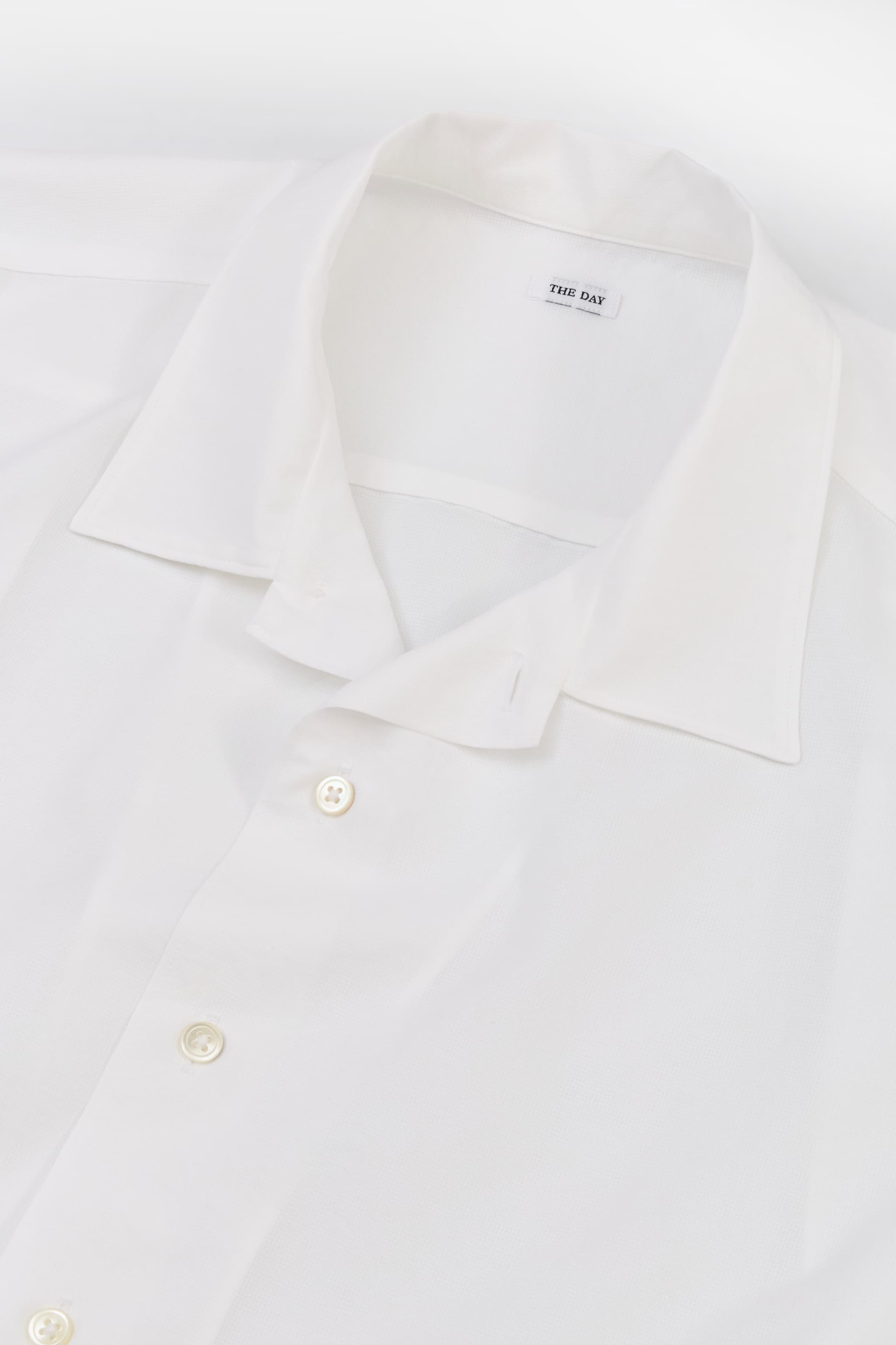 襟は開襟としても、上までボタンを留めても着られる2WAYデザイン。